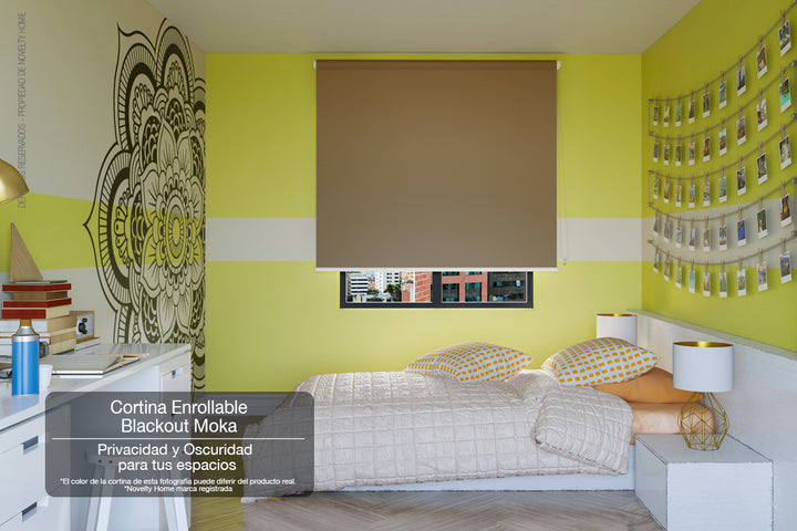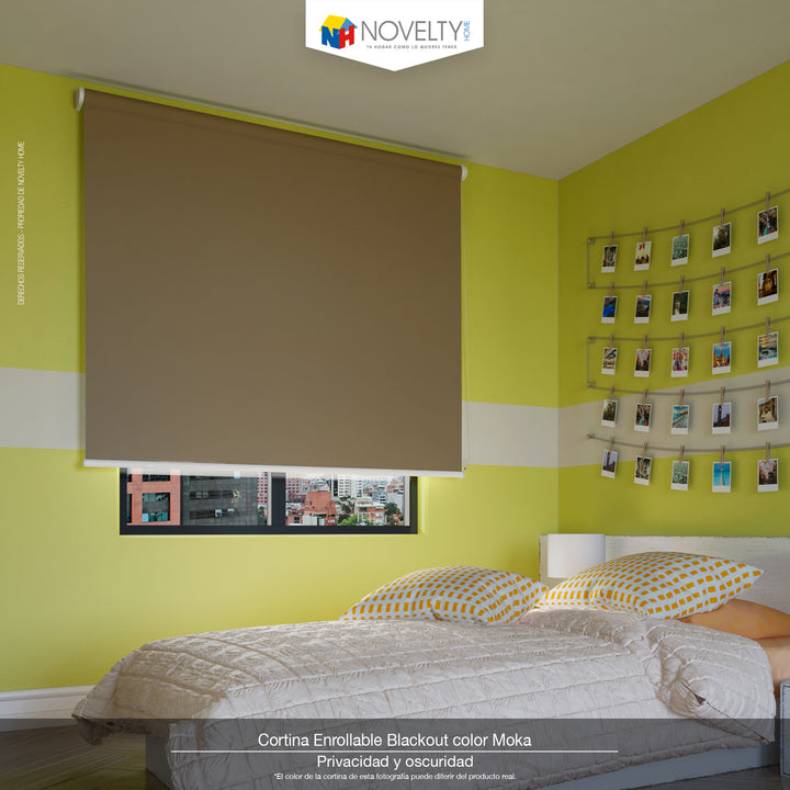 Cortina elaborada en tela 100% Blackout, que por sus características bloquea la luz y es ideal para ambientes en los que se desea MAYOR oscuridad y privacidad.
