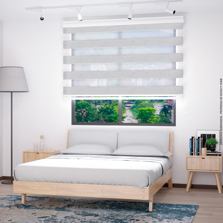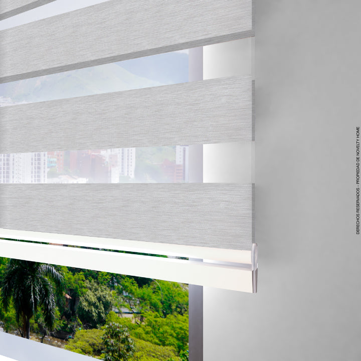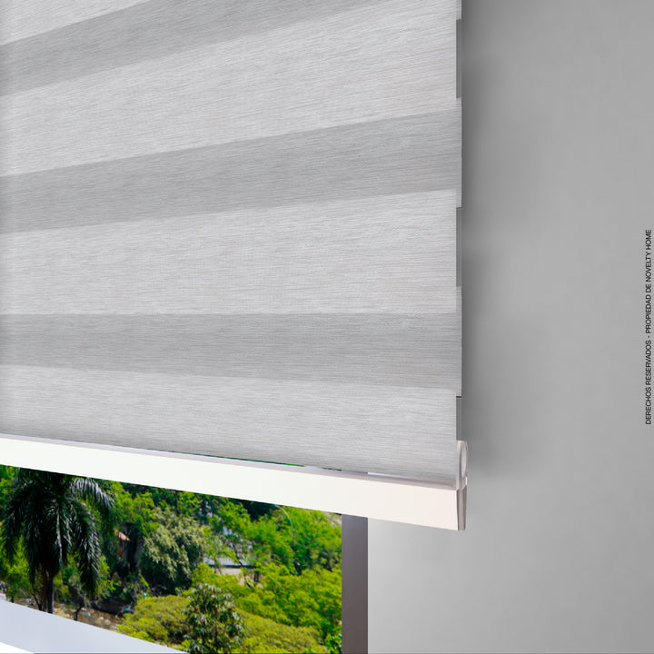 La Cortina Enrollable Sheer Elegance con efecto Blackout intercala a lo largo de la tela franjas de tejidos sólidos en tela blackout y franjas translúcidas, que al ser intercalados entre si pueden dar luminosidad a los espacios o hasta un 70% de oscuridad.