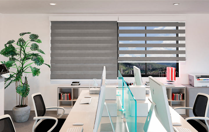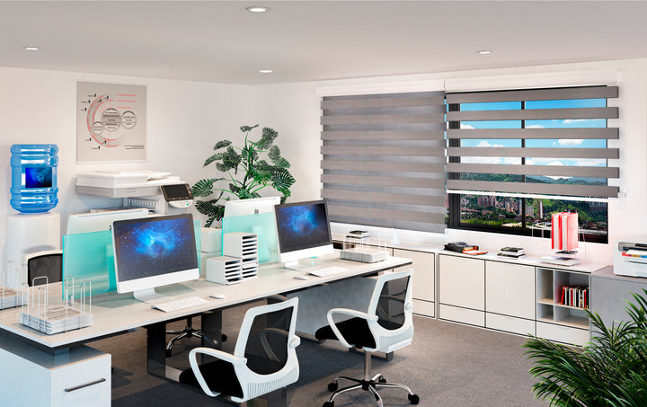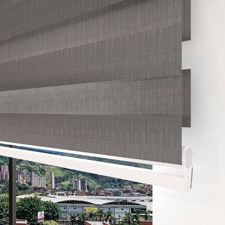 La Cortina Enrollable Sheer Elegance es una cortina práctica y moderna que gracias al delicado y sutil diseño de su tela, que intercala horizontalmente franjas de tejidos sólidos y translúcidos, puedes graduar los niveles de luz y privacidad que deseas tener al interior de tus espacios.