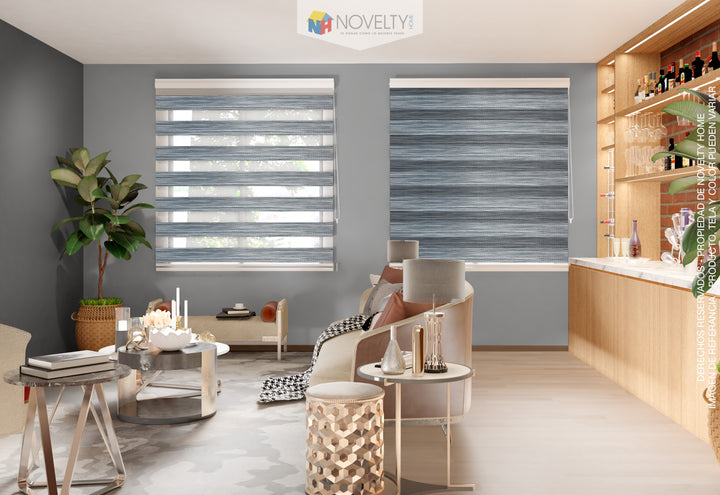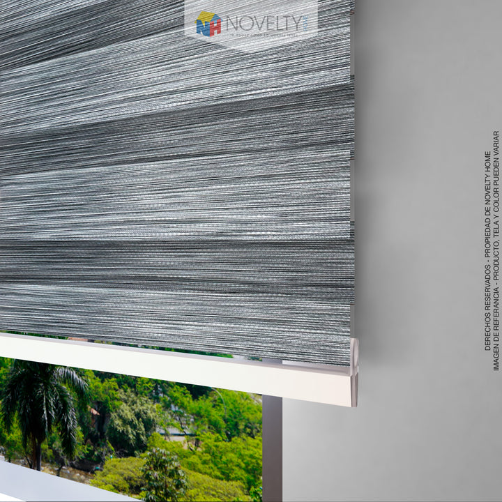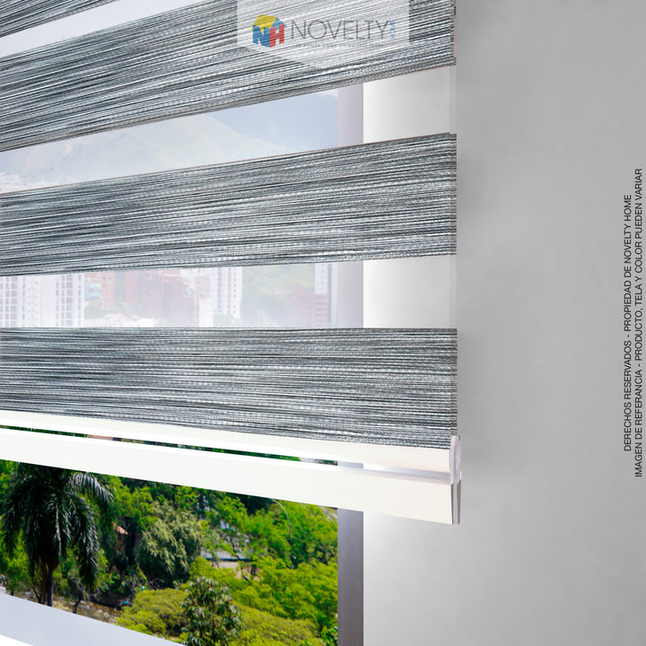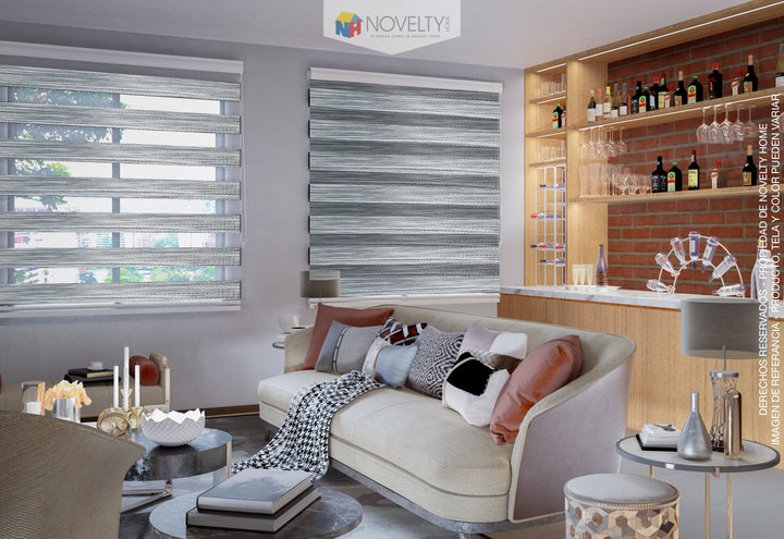 - La cortina esta compuesta por franjas horizontales de tejidos sólidos y traslúcidos que se intercalan a lo largo de la tela. Al subir y bajar la tela, las franjas se sobreponen entre si hasta lograr el nivel de opacidad deseado.