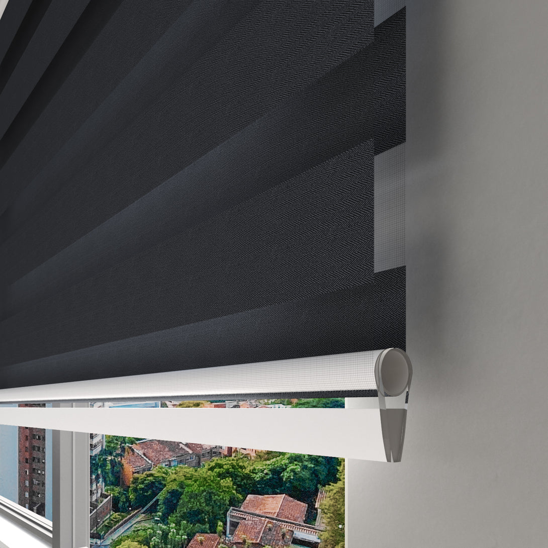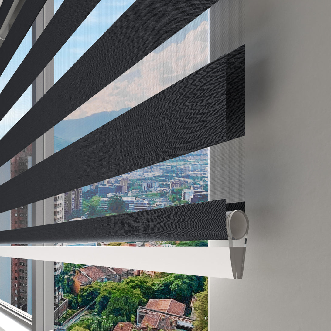 La Cortina Enrollable Sheer Elegance es una cortina práctica y moderna que gracias al delicado y sutil diseño de su tela, que intercala horizontalmente franjas de tejidos sólidos y translúcidos, puedes graduar los niveles de luz y privacidad que deseas tener al interior de tus espacios.